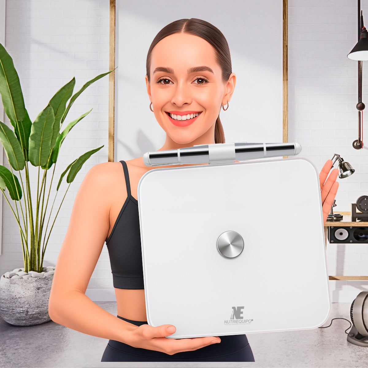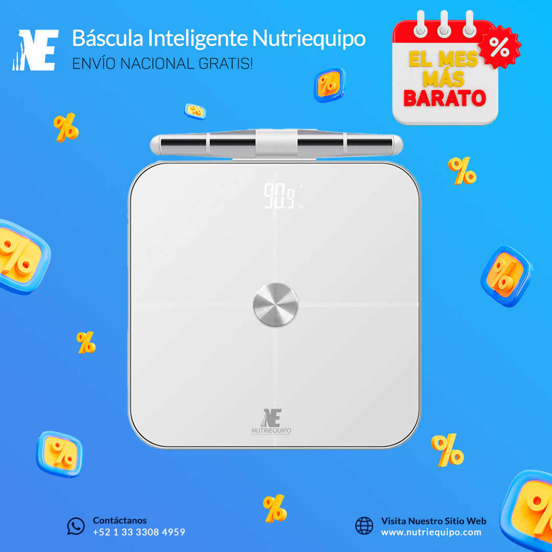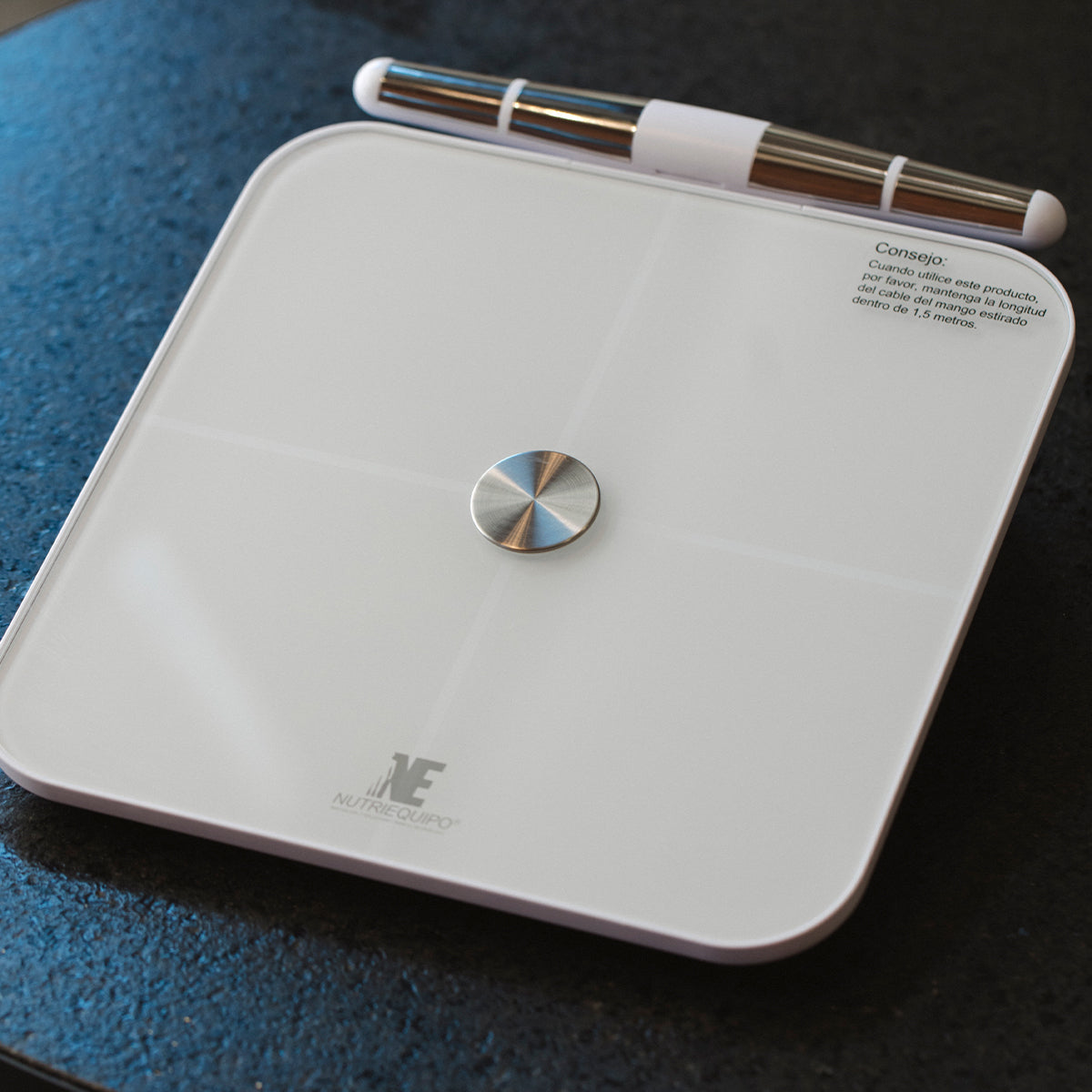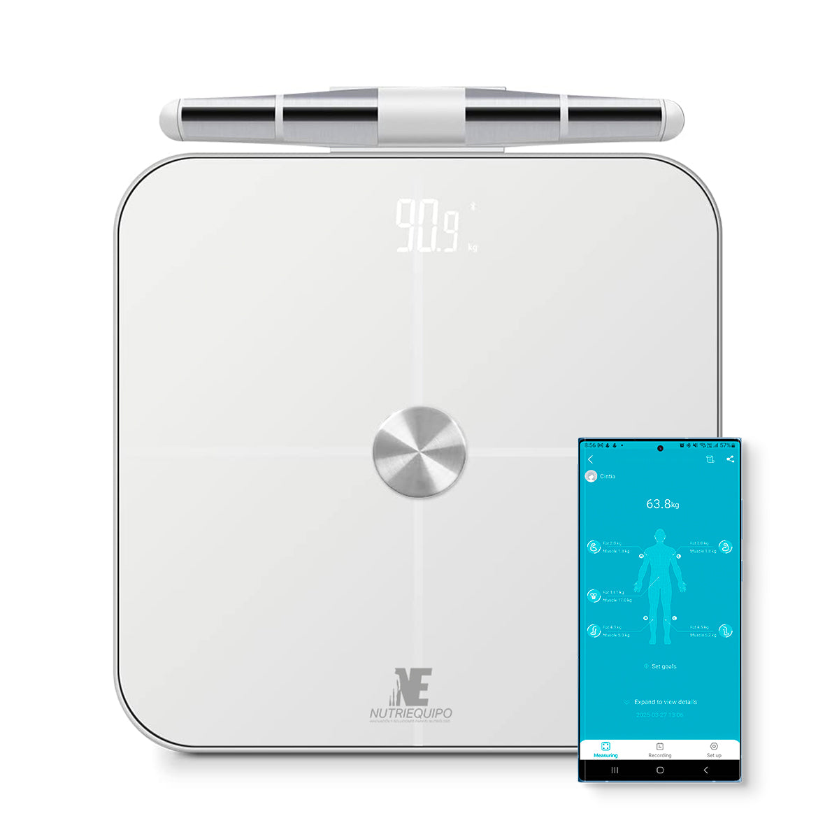 📊 Lleva tu consulta al siguiente nivel con la báscula inteligente Nutriequipo de 8 electrodos. Obtén mediciones precisas por segmentos (brazos, piernas y tronco) y sincronízalas vía Bluetooth con la app AiLink 📱 para analizar más de 30 métricas corporales en segundos.