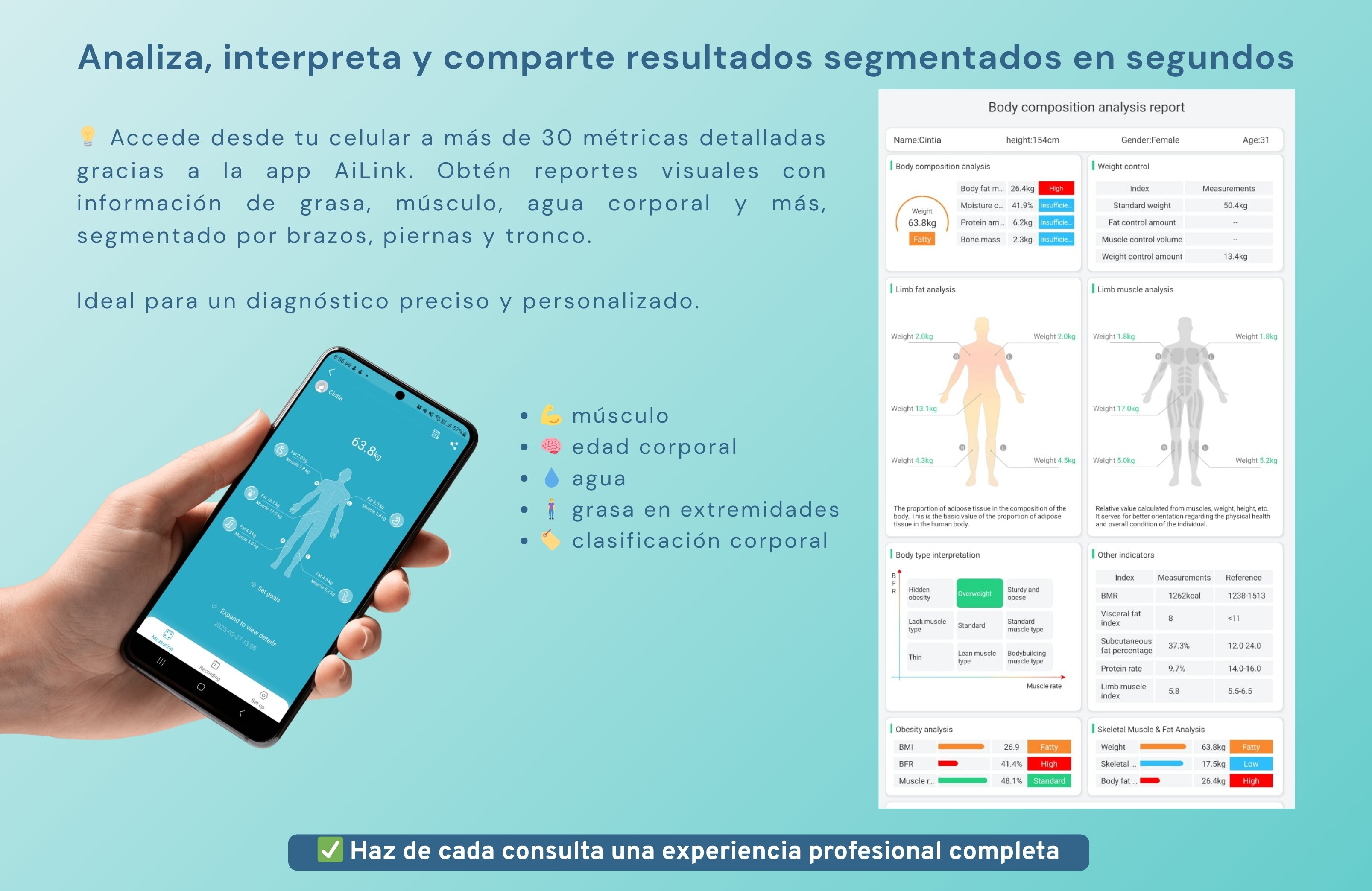 - ✅ Más de 30 mediciones para un análisis corporal completo 📊