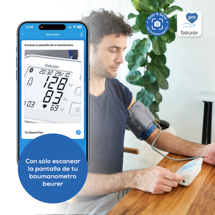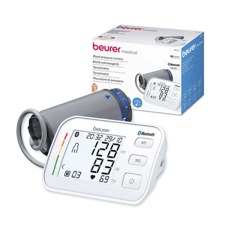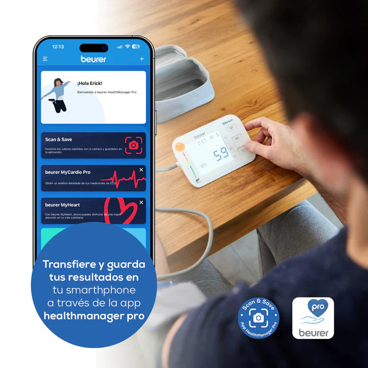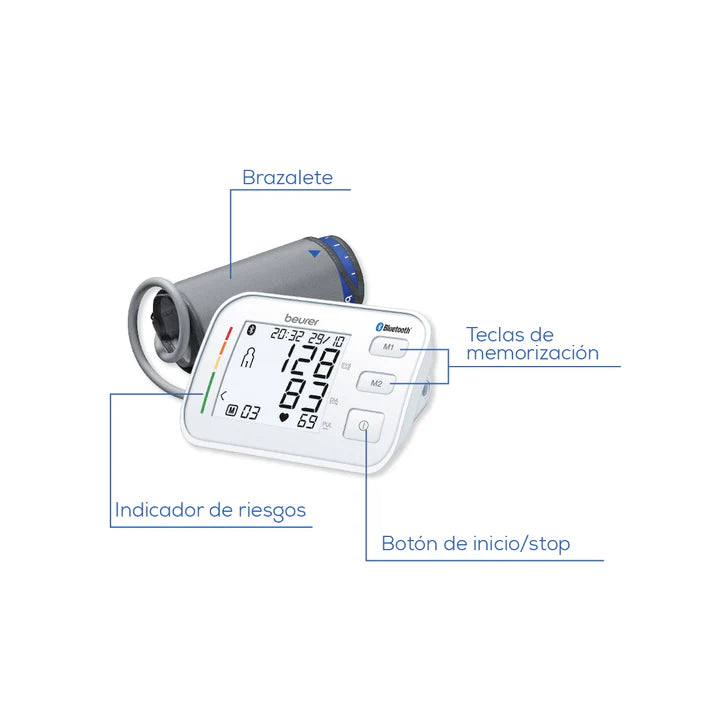 - 📲 Conectividad Inteligente para tu Salud: El Beurer BM57 facilita el control del pulso y la presión arterial, permitiendo la transmisión de datos a tu smartphone vía Bluetooth® para un seguimiento continuo y preciso.