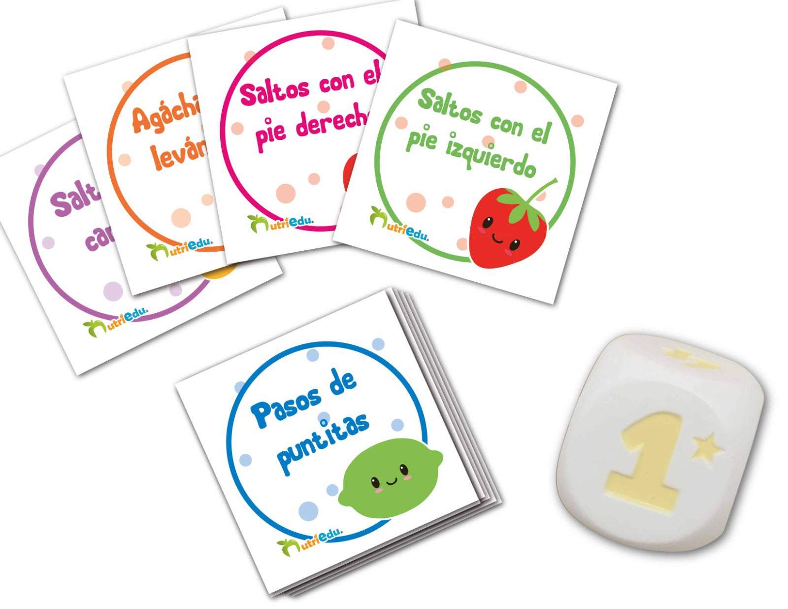 - 🎲 Juega y Ejercítate: Tira el dado, toma una tarjeta y realiza la actividad indicada la cantidad de veces que determine el dado. Perfecto para jugar individualmente o en equipos.